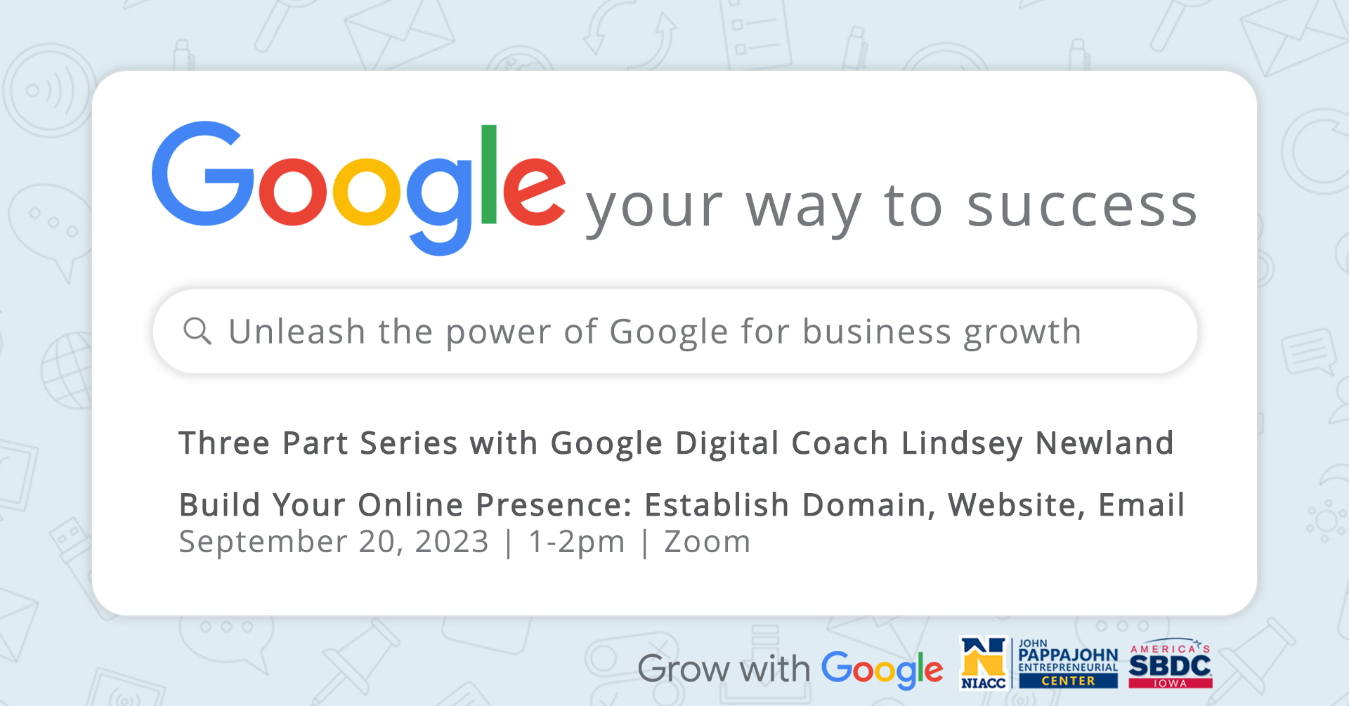 The NIACC John Pappajohn Entrepreneurial Center has partnered with Iowa Google Digital Coach Lindsey Newland for a three-part workshop series. These free seminars will help entrepreneurs discover and apply strategies for business growth.